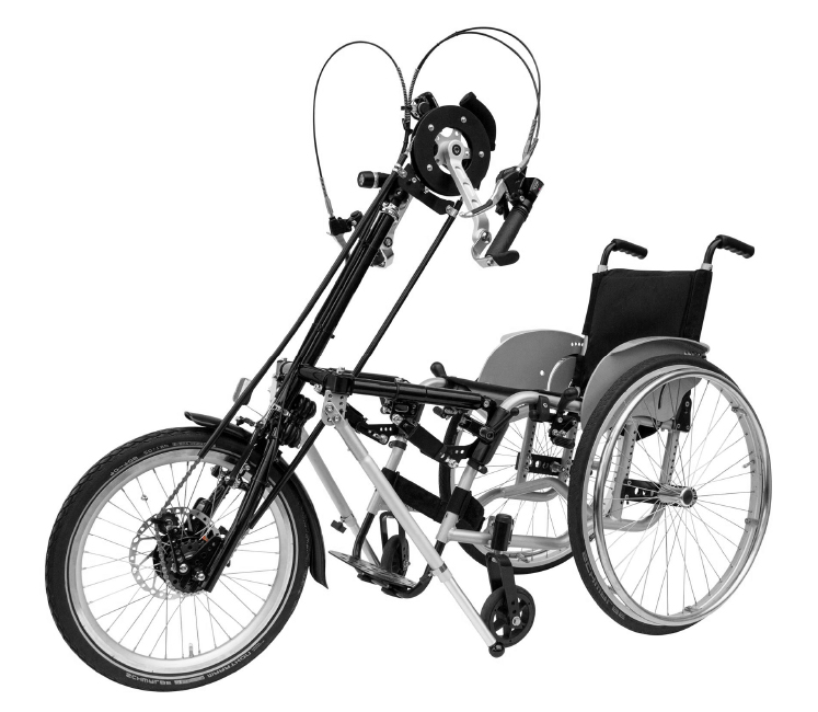In verschiedenen Ausführungen und Konfigurationselementen besitzt es alle grundlegenden Funktionen eines manuellen Handbikes.