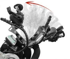 Durch die Kinnschaltung ist es möglich, die Gänge über das Kinn durch zu schalten. Die Kinnschaltung kann zur komfortablen Adaption des Handbikes auch temporär weggeklappt werden um Platz zu schaffen.
