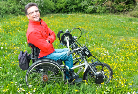 Menschen mit Tetraplegie haben besonders hohe Anforderungen. Da viele motorische Fähigkeiten häufig stark eingeschränkt sind oder nicht mehr funktionieren, müssen klassische mechanische Eingaben wie das Drehen des Drehgriffs oder Ziehen des Bremszuges neu durchdacht und überarbeitet werden. Deswegen bieten wir für die meisten unserer Handbikes und Zuggeräte auch Tetraausstattungen an. In dieser Ausstattungsform werden unsere Produkte den hohen Anforderungen der Tetraplegie gerecht, ohne sicherheitstechnische Aspekte zu komprimieren.