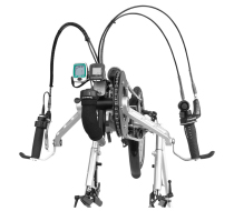 Eine Gangschaltung ermöglicht eine Anpassung der vorhandenen Kräfte an die Fahrsituation. Gesteuert wird das Vorspann-/Einhängefahrrad durch mit den Handkurbeln ausgestattete Lenkbewegungen. Zum Bremsen werden die Handkurbeln rückwärts bewegt (Rücktrittbremse) oder es befinden sich zusätzliche Bremshebel an den Handgriffen. Ein Umgreifen zum Bremsen ist nicht erforderlich.