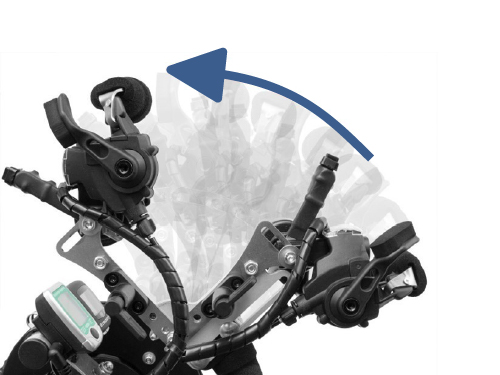 Durch die Kinnschaltung ist es möglich, die Gänge über das Kinn durch zu schalten. Die Kinnschaltung kann zur komfortablen Adaption des Handbikes auch temporär weggeklappt werden um Platz zu schaffen.