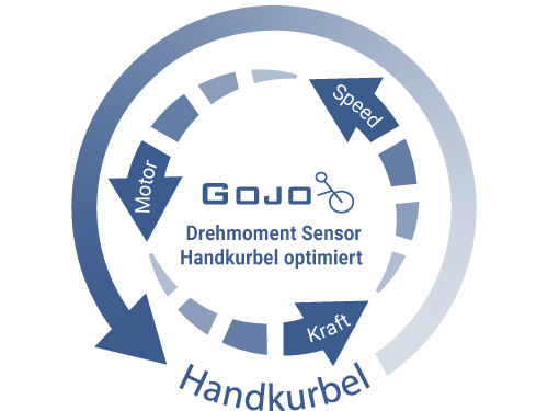Mit einem für Handkurbelantrieb optimierten Drehmomentsensor ausgestattet, erkennt das Smart Dynamic die an der Kurbel erbrachte Muskelkraft und fügt die Motorunterstützung dynamisch hinzu. Dank unserer langjährigen Erfahrung im Bereich der hybriden Handbikes sowie dem Vorgängermodell "Neodrives", gelang es uns, das Antriebssystem "Gojo" genau nach unseren besonderen Anforderungen zu entwickeln. So konnten wir Kleinigkeiten verbessern und bisherige Stärken hervorheben.