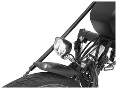 Für die Belichtung der Fahrbahn sorgt eine LED-Lampe an der Vorderseite. Sie wird von der Systemspannung versorgt und muss daher nicht separat beladen werden. Eingeschaltet wird sie über eine Bedienung am Lenker oder am Steuergehäuse.